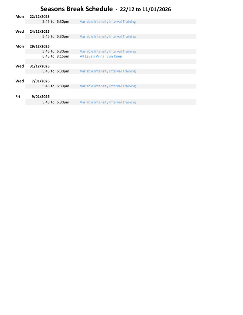 Training and Holidays